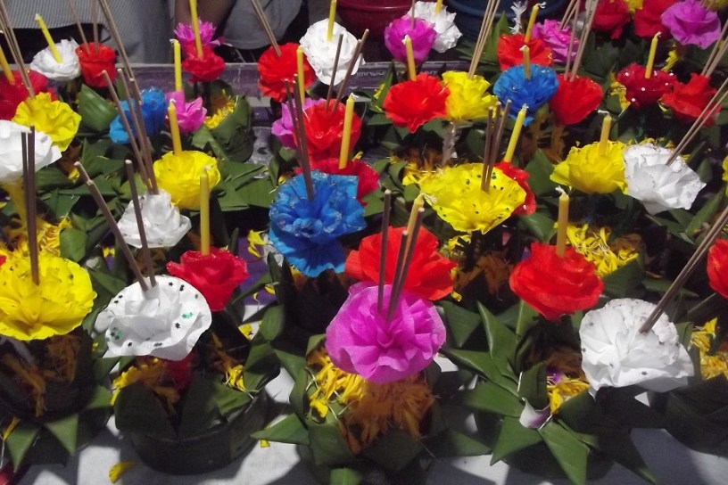 Loy Krathong is a wonderful and colourful festival celebrated every year of the night of the full moon of the twelfth lunar month. In Thai, Loy means to float and Krathong means a circular floating object embellished with banana leaves, flowers a candle and incense stick, sometimes with even a deposit of money, small change of course.