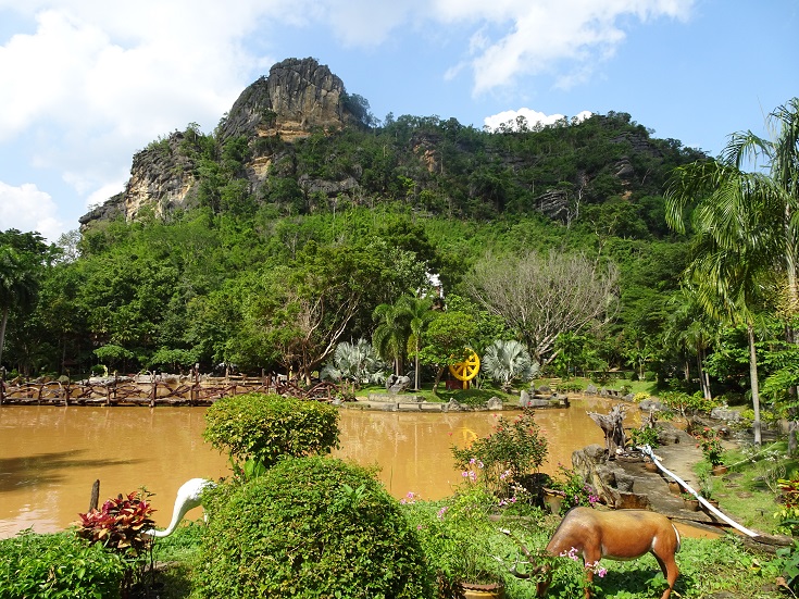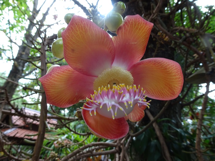 Our next stop on our tour was the Wat Tham Khao Wong. This was a beautiful area, with a beautiful wooden temple, gardens and water feature. It looked something that resembled a stately home than anything else. It also had some cannonball trees (couroupita guianensis), that had the most intricate flower that I have ever seen. It has a particular association with Buddhism.