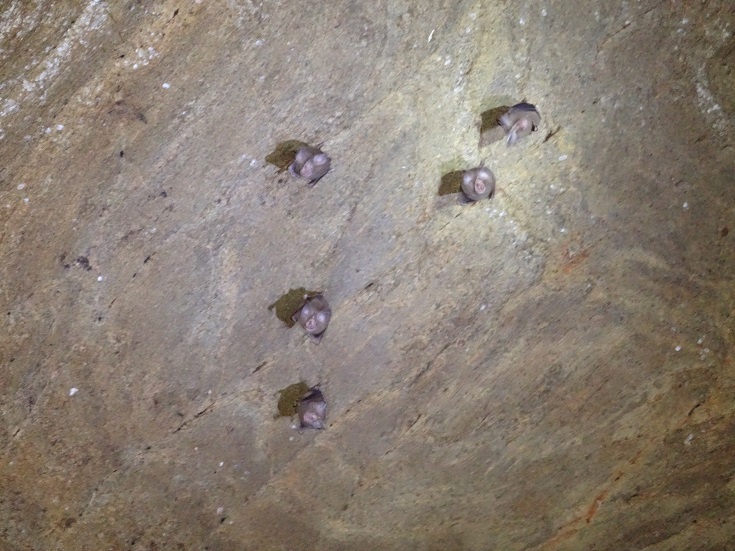 Bats hanging from the cave ceiling