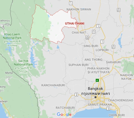 Uthai Thani in relation to Bangkok, Thailand