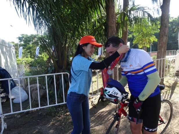 By the third lap, my speed dropped, to an average low of 28.40 km/h. I knew at one point I was cycling at 19km/h, and I was tiring fast. Another group of cyclists passed me with ease, but then they all seemed to slow down when they hit the inclines. I seemed to shoot past them. Obviously, the mountain cycling in Loei the month before had done me good.