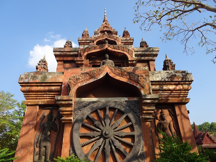 At this site, there was the attractive Wat Khao Angkhan. This was a delightful 50-year-old red-clay building with an ordination hall which has a khmer style gateway leading up to a Sri Lankan style bell-shaped chedis.