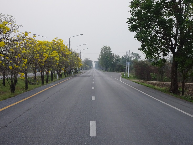 The road for much of the way was lined with ratchaphruek trees, Thailand’s national flower. At this time of year, the trees are in bloom, so the road took on a golden tinge.